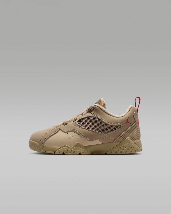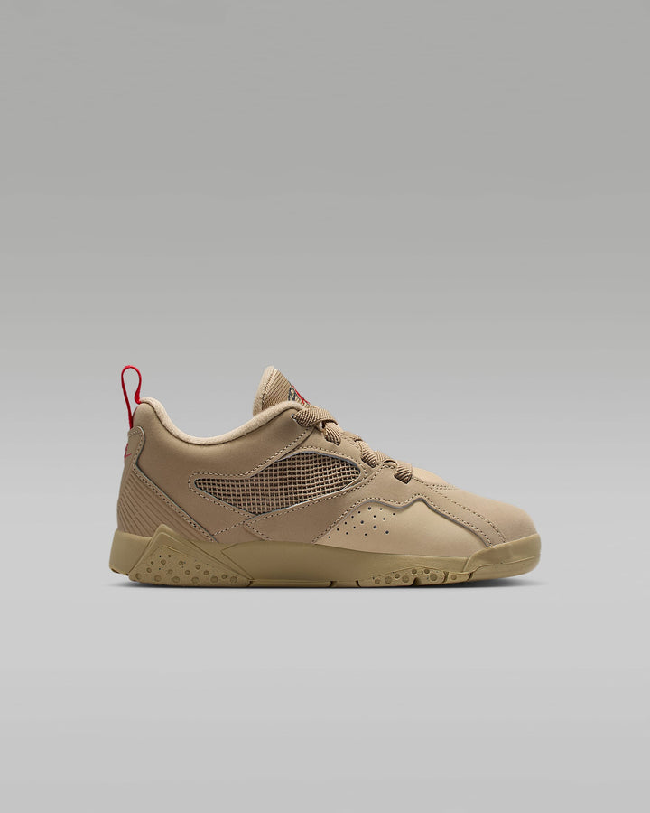 How do you top the AJ7? You reimagine it with a low-top silhouette. We started with the layered upper and iconic midsole that turned the original into an instant classic. Then we added textile accents and a padded, low-cut collar to give kids a fresh, modern look.
