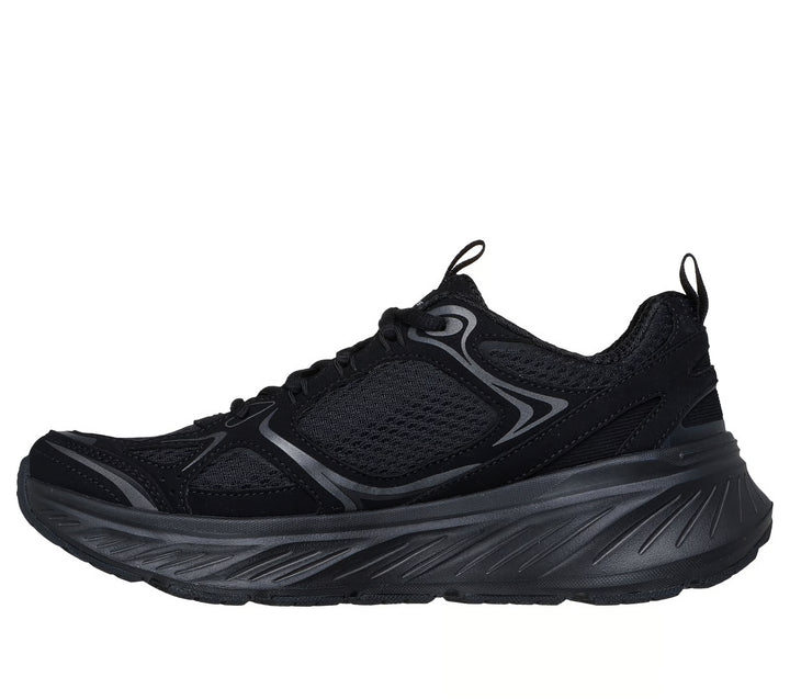 Enhance your performance while minding your footprint wearing Skechers Relaxed Fit®: Edgeride - Silver Eclipse. Designed with recycled materials, this roomy vegan style features a lace-up mesh upper with synthetic duraleather...