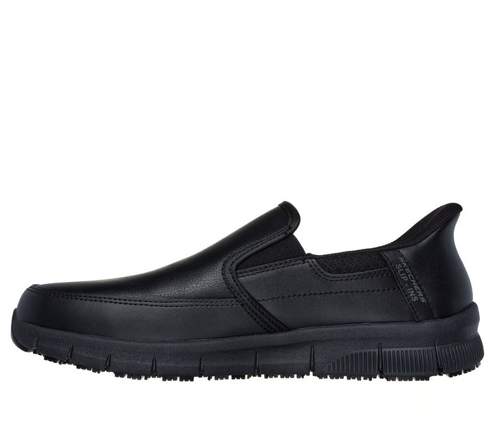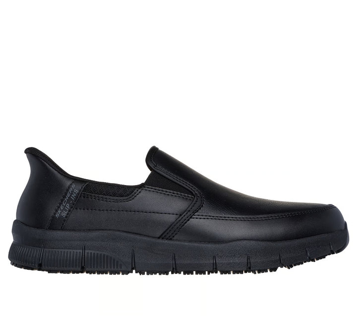 Surefooted comfort and easy-wearing safety combine in Skechers Hands Free Slip-ins® Work™: Nampa - Broxtin. Designed with our exclusive Heel Pillow™, this slip-resistant style features a smooth leather upper with double-gore...