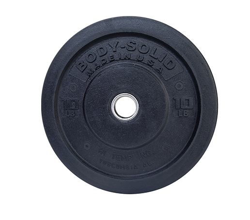 Body-Solid Full Commercial /Premium Bumper plates are Made in the USA with recycled materials and a Stainless Steel bushing for long life and durability. Made to withstand the abuse in any weight...