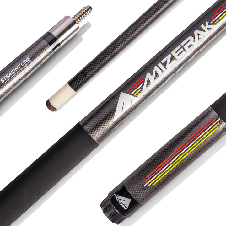 The Mizerak 58" Deluxe Carbon Composite Cue is a stylish and durable asset to any billiards set. It features a 13mm carbon/fiber ferrule with leather tip, 25mm stainless steel joint and custom rubber bumper. And, with our Straight Line Composite Technology, you will never have to worry about this cue warping.