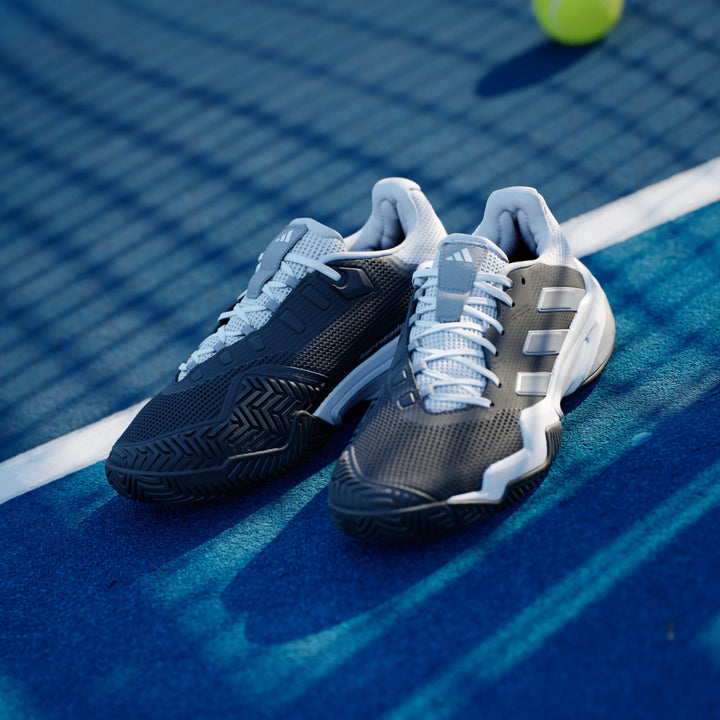Take control of the court in these adidas Barricade tennis shoes. Torsion System provides match-turning stability, while the asymmetric lacing locks you in for quick cuts and slides. A REPETITOR midsole adds support and smooth transitions from one step to the next. Geofit Sensepods follow your heel's natural shape, ensuring comfort and support that lasts through to match point.
