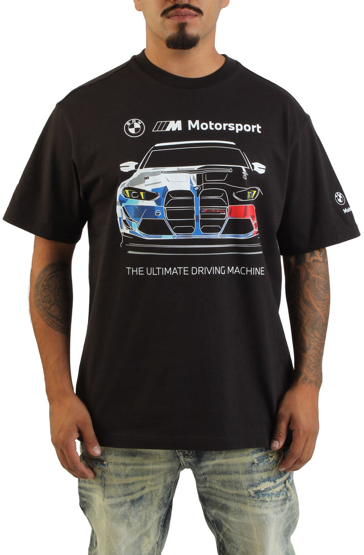 This PUMA BMW Motorsport Bold Graphic T-Shirt isn't just any men's graphic t-shirt; it's a straight-up flex that screams speed, precision, and uncompromised style.