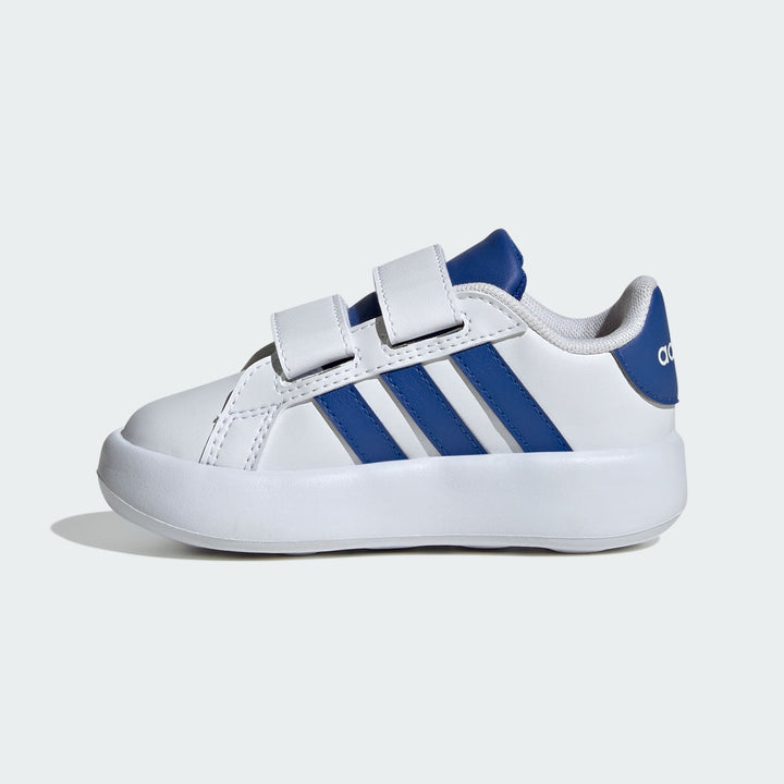 If your infant could talk, they'd tell you how much they love these adidas Grand Court shoes! Hook-and-loop straps make slipping these on a cinch, while the bubbly EVA sole keeps little growing feet happy. Whether they're crawling, cruising or taking their first steps, the fun colors and classic 3-Stripes will inspire a lifetime of play.
