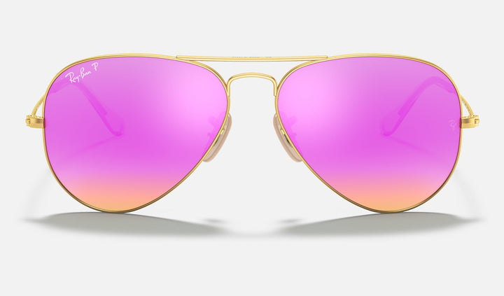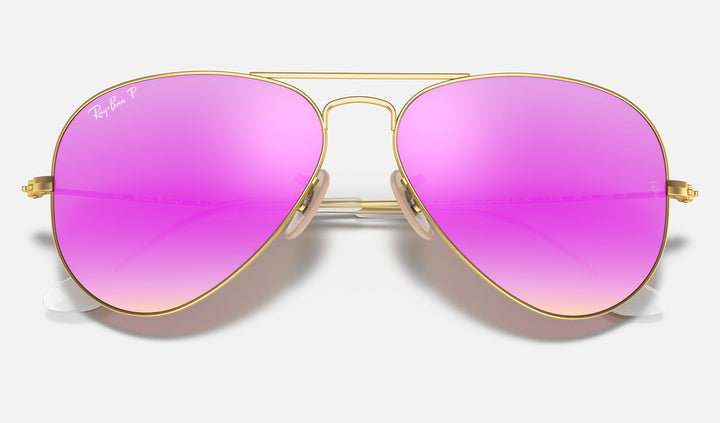 Reflect your style with Ray-Ban Aviator Flash lens sunglasses, one of the most iconic sunglass models in the world. Ray-Ban RB3025 Aviator Flash Lenses reinvented the standards of the market with its unique teardrop shape and flash lens combination.Wear this Aviator style in a variety of colors such as brown mirror gold, green mirror silver, brown mirror pink and crystal green mirror, to ensure you never go unnoticed.