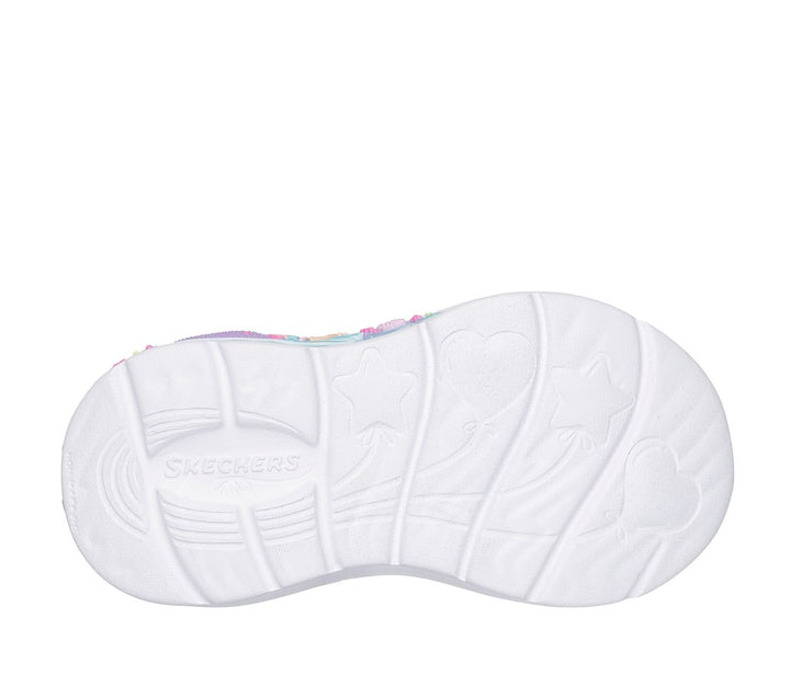 Playful lights and colorful fun combine in Skechers My Dreamers - Lil Mermaid. This light-up sky-themed style features an ombre glitter mesh and synthetic upper with stretch laces, adjustable instep strap...