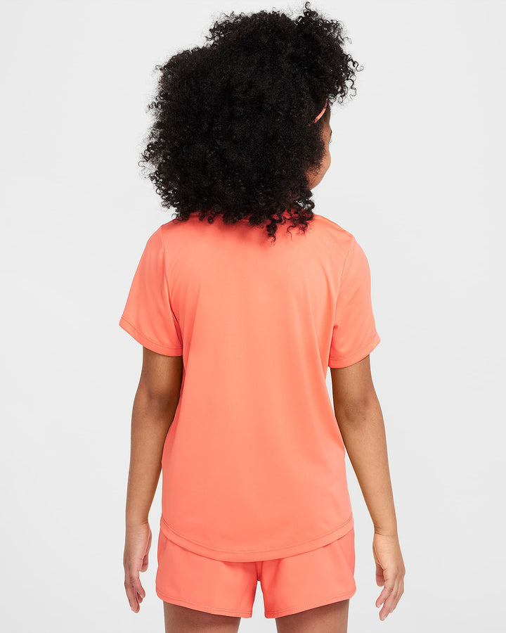 Whether you're headed to practice or relaxing with friends, this Nike One Fitted top is ready for whatever your day holds. Its soft jersey knit fabric uses our sweat-wicking technology to help you stay cool and comfortable. A tailored fit and slightly curved hem make it the perfect addition to a head-to-toe look you can feel confident in, no matter the activity.