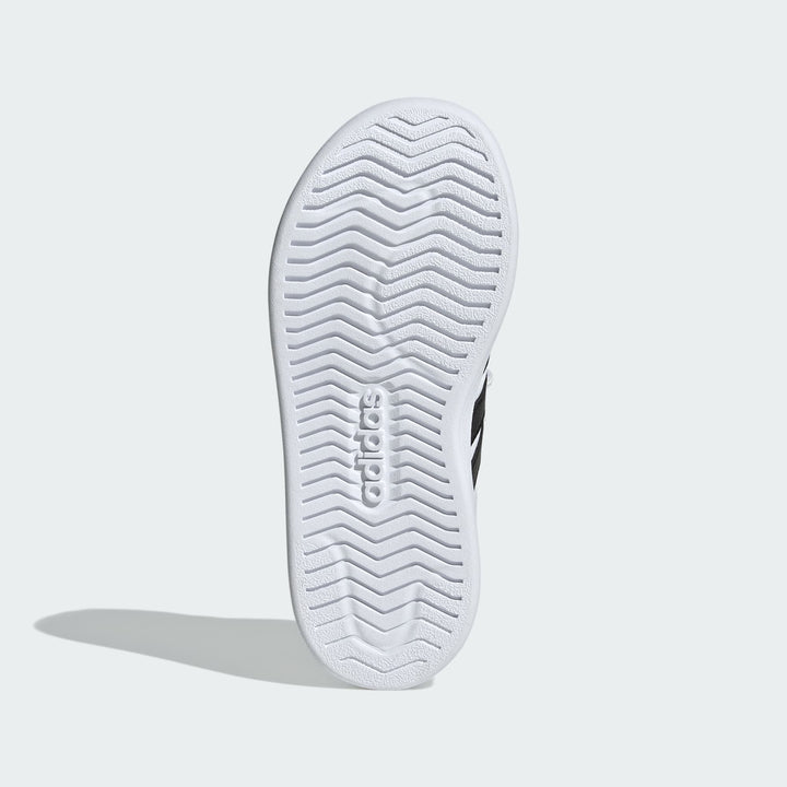 Whether they're running around the park or kicking back at home, these kids' shoes from adidas keep kids comfortable and stylish. The rubber outsole grips the ground as they move, and a synthetic upper with a rubber shell toe cap offers extra durability. Hook-and-loop straps make them easy to slip on and off so your kid is ready for adventure at a moment's notice.