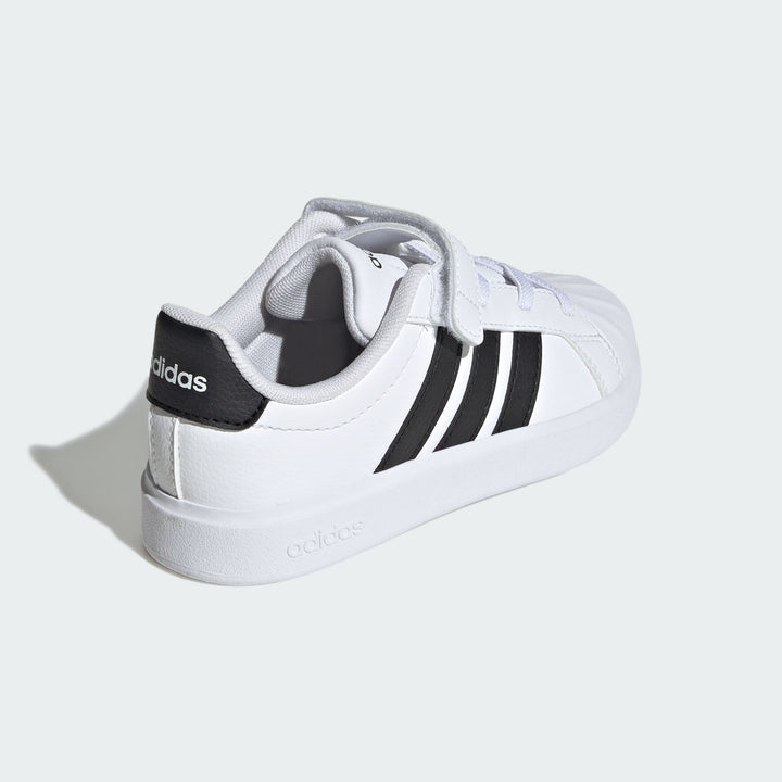 Classic shell-toe shoes in a wide fit for active kids. Whether they're running around the park or kicking back at home, these kids' shoes from adidas keep kids comfortable and stylish....