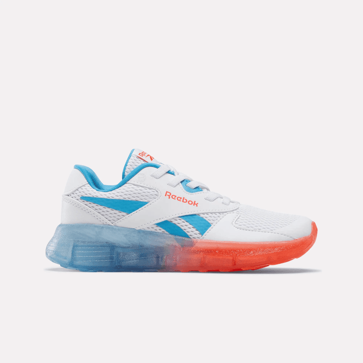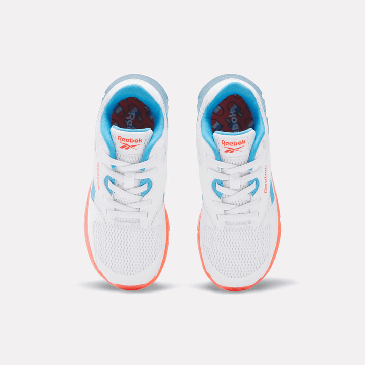 Light up his look with these boys' Reebok running shoes. LED midsole lights are activated by his steps to make chasing around the playground even more fun. Turn the lights on or switch them off with a button on each shoe. Elastic laces get him in and out of the shoes in a flash.
